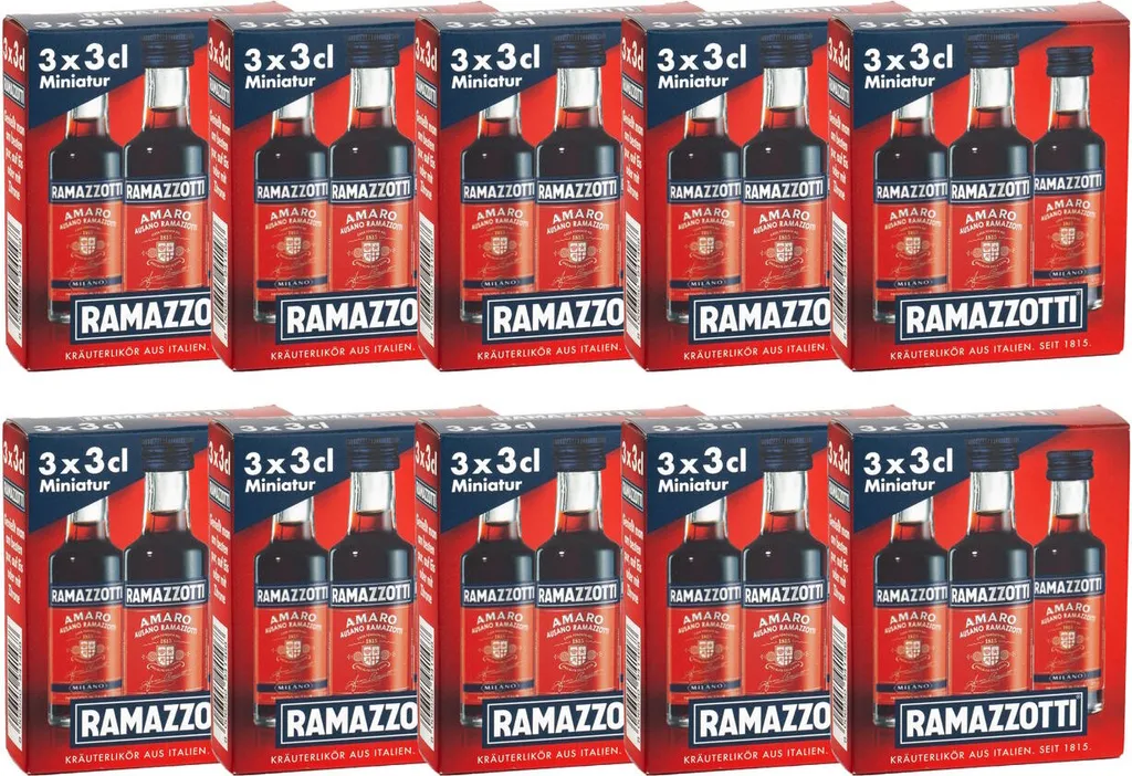 Schreibe die erste Rezension für „Ramazzotti Amaro 30% „MINIATUR 3 X 3cl (10 Packungen A 3 Stück)“ Antwort abbrechen